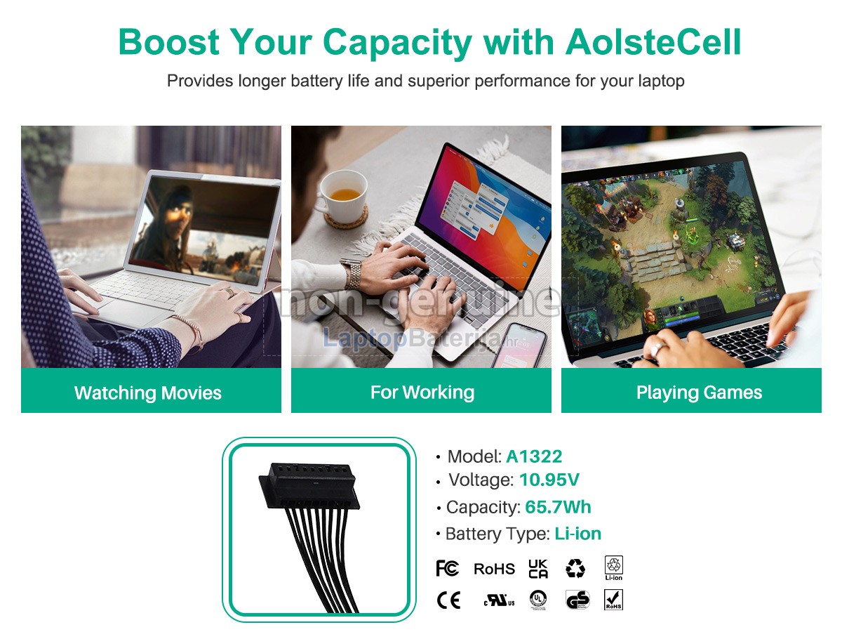 Baterija za prijenosna računala Apple MC700LL/A prihvaća nove uvezene stanice baterije, pouzdanu kvalitetu, izvrsne izvedbe kao i dulju uporabu. Pored toga, ljuska zamjenska baterija Apple MC700LL/A napravljena je strogo sukladno s izvornim oblikom baterije 1:1 uporabom legirani ekološki materijali ABS+PC otporne na temperaturu i trošenje kako bi savršeno odgovarala vašoj opremi i donijela vam savršeno iskustvo uporabe.
