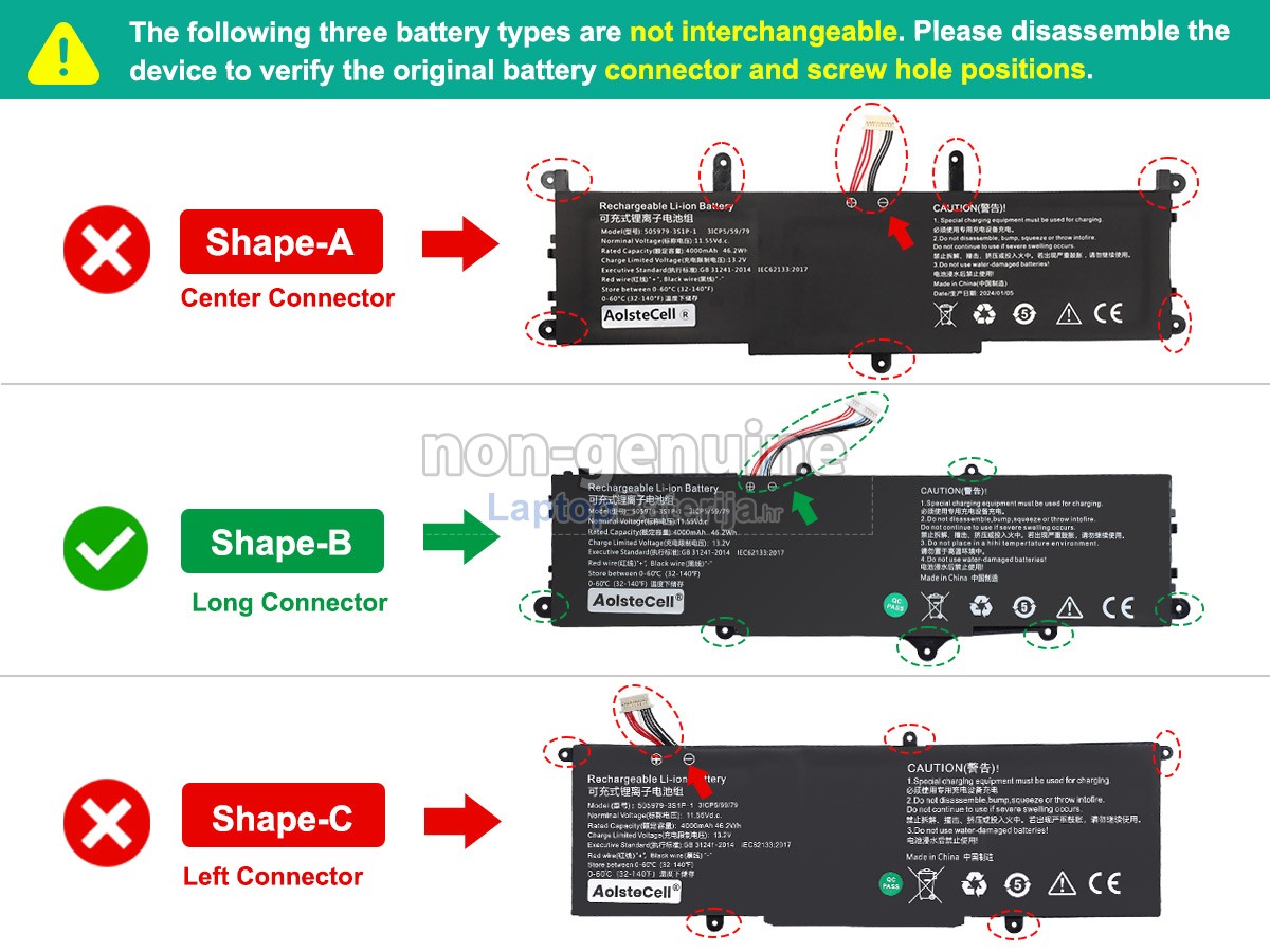 laptopbaterija.hr razumije da je sigurnost baterije veoma važna. Čvrsto smo predani tomu da ne koristimo niže kvalitetne sirovine! Svaka zamjenska baterija CHUWI 505979-3S1P-1(3ICP5/59/79) strogo se ispituje stotine puta prije napuštanja tvornice kako bi se osigurali standardi visoke kvalitete. Mi strogo kontroliramo kvalitetu baterije, svaka baterija za laptop CHUWI 505979-3S1P-1(3ICP5/59/79) prošla je CE, UL, ROHS, ISO9001 i druge certifikate o državnoj sigurnosti. Ne samo da je 100% kompatibilna već ima i pametnu zaštitu od sigurnosnih problema kao što su pretjerano punjenje, pretjerano pražnjenje i pregrijavanje. Pored toga, naš tehnički tim će, također, ispitati napon i kapacitet baterije prije isporuke kako bi osigurao da baterija koju primite radi ispravno.
